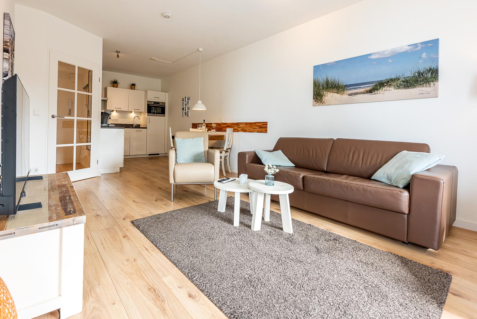 Das Appartement liegt in der 3.Etage an der Süd-Westseite und ist hell und modern eingerichtet mit alles wass Sie sich wünschen können.